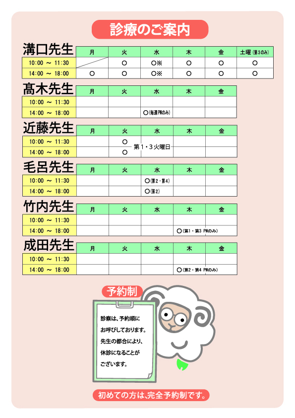 - 20歳以上の方はご予約時に紹介状が必要になります。